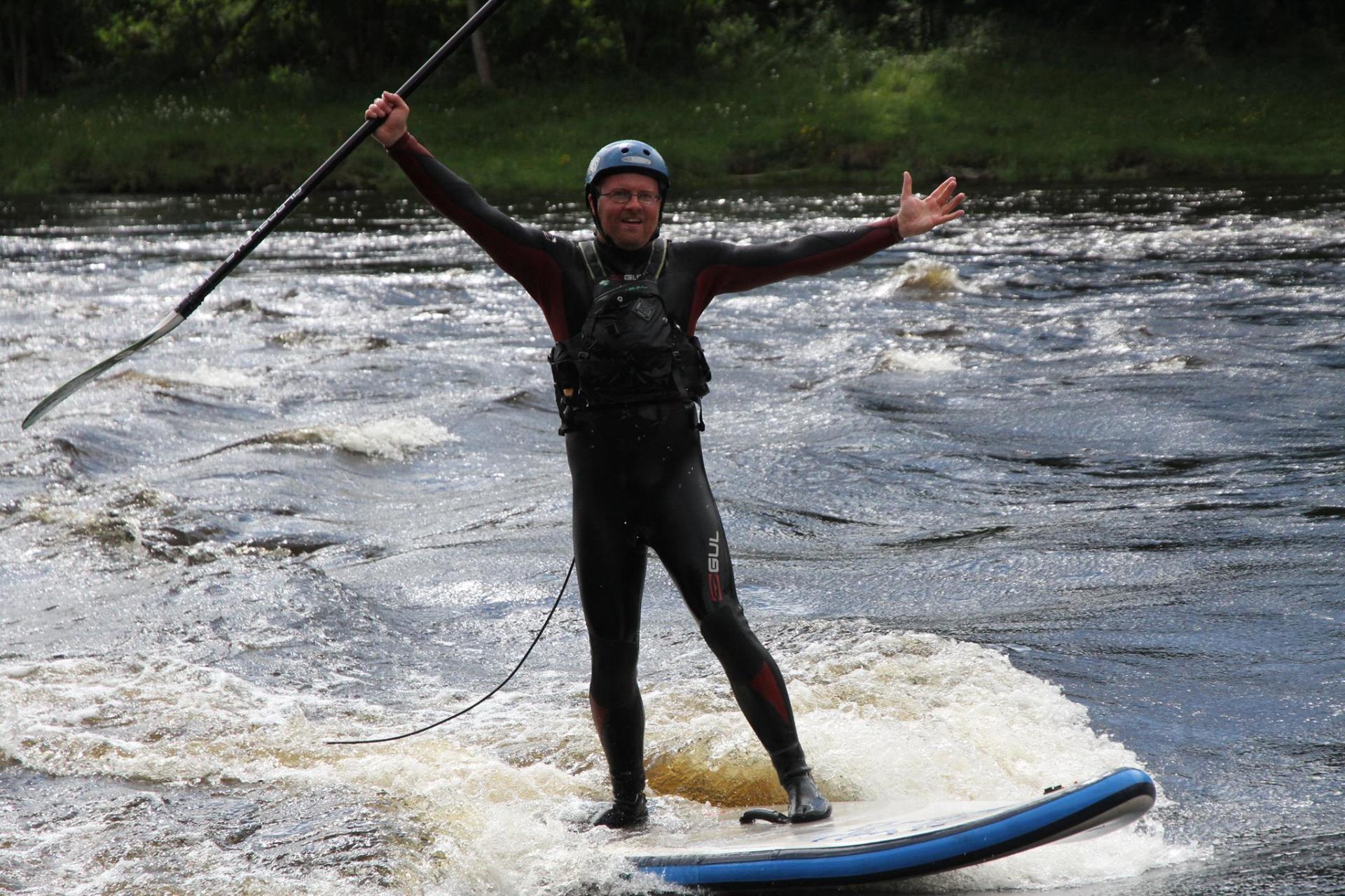 Our River Surfing/Introduction to Whitewater classes are ideal for the Paddleboarder looking to push and progress their skills. River Surfing is an amazing sport, surfing stationary waves on the river, it is a great way to improve your surfing and board skills. Suitable to Intermediate and advanced Paddleboarders, our sessions are on the River Tay in Perthshire. Session's cost £40pp.